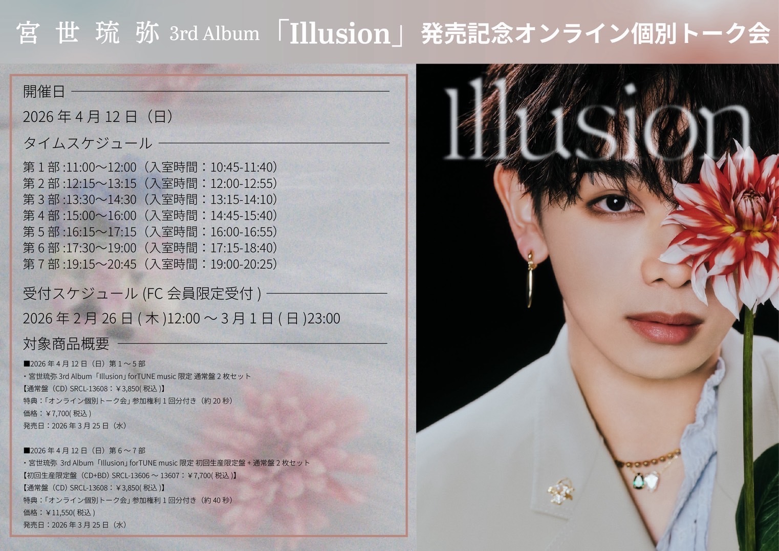 【宮世琉弥 3rd Album「Illusion」発売記念オンライン個別トーク会 概要】