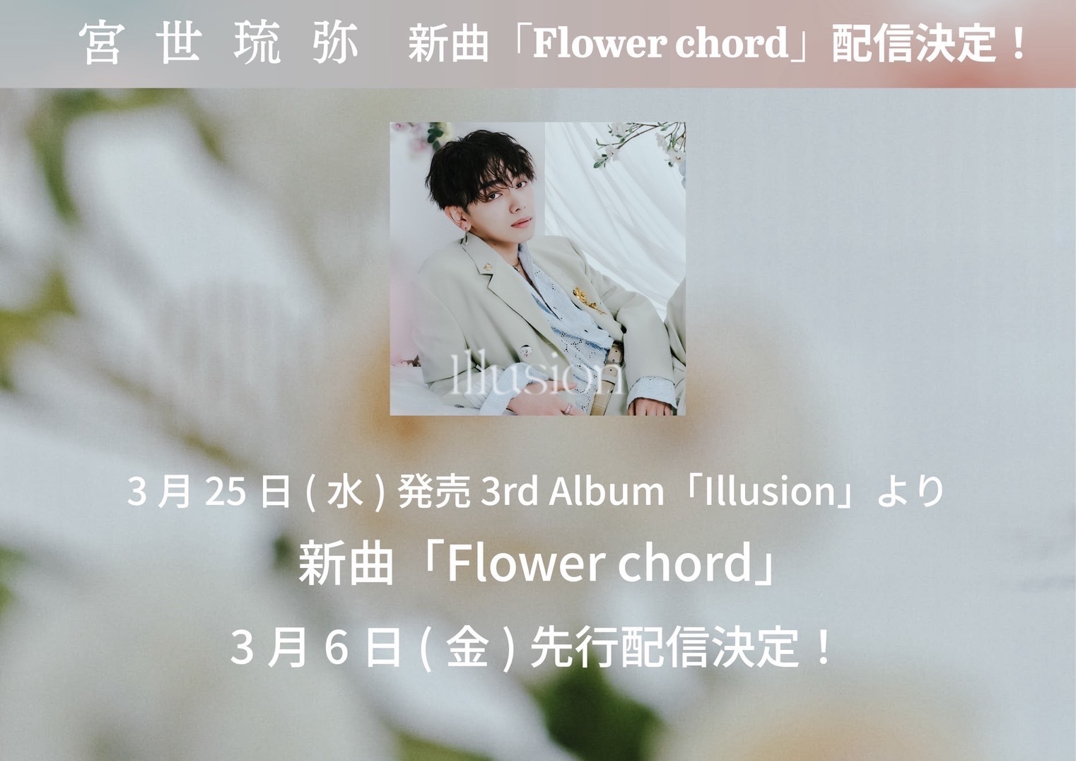 3月25日(水)リリースの宮世琉弥 3rd Album『Illusion』より、新曲「Flower chord」の3月6日(金)先行配信が決定しました!ぜひご期待ください!