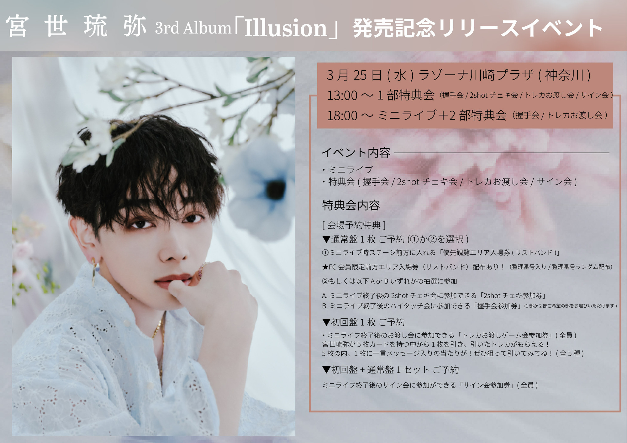 宮世琉弥 3rd Album「Illusion」の発売を記念したリリースイベントの詳細が決定いたしました!