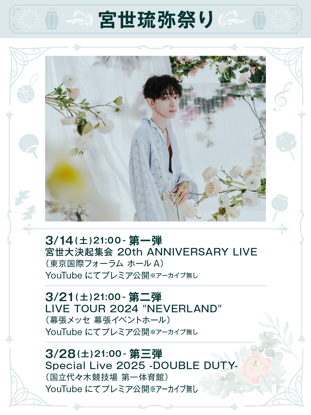 一夜限りのライブ映像YouTubeプレミア公開“宮世琉弥祭り”決定!