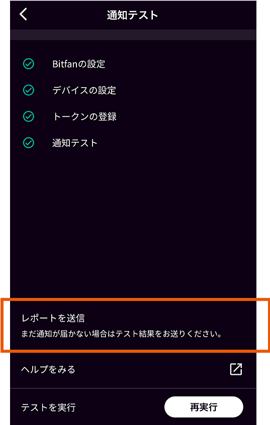 通知テストを行っても通知が届かない場合は、レポートを送信してください。